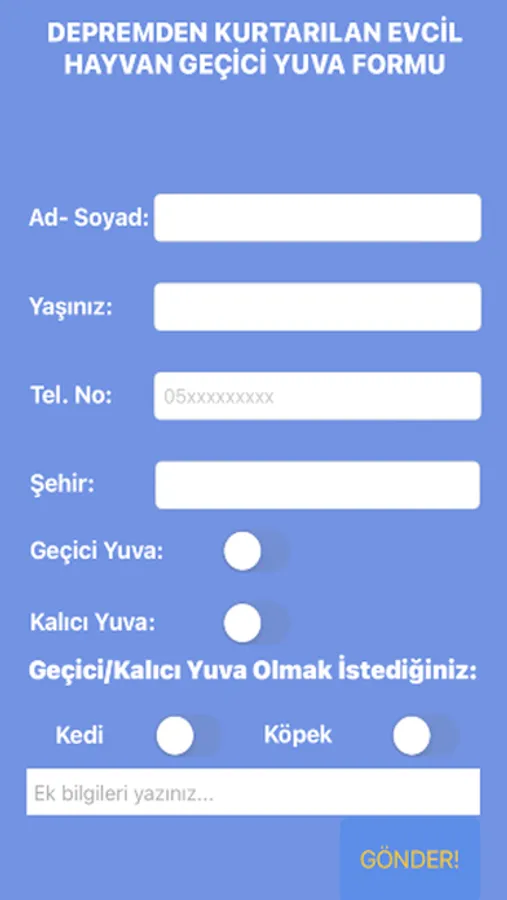 Depremden kurtarılan "can"lar için yuva olma form uygulaması