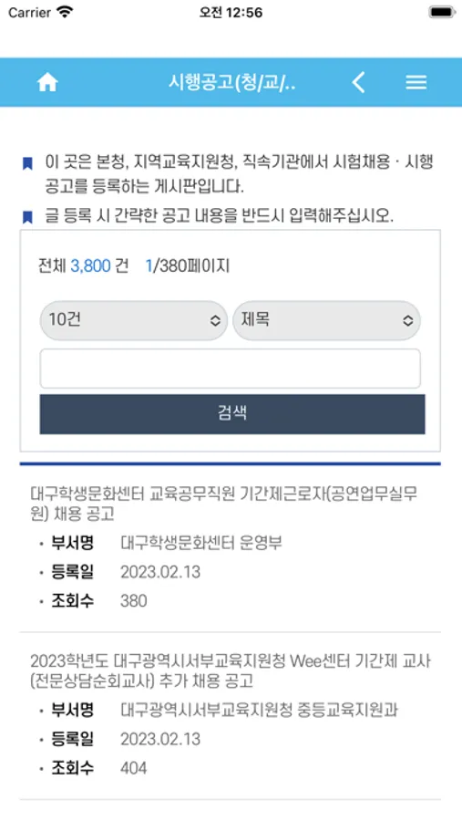 - 대구교육 알리미의 공지사항을 확인할 수 있습니다.