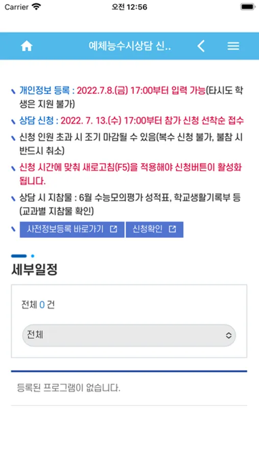 - 상설 대입상담, 수시상담(예체능), 수시상담(일반), 정시 상담의 을 확인할 수 있습니다.