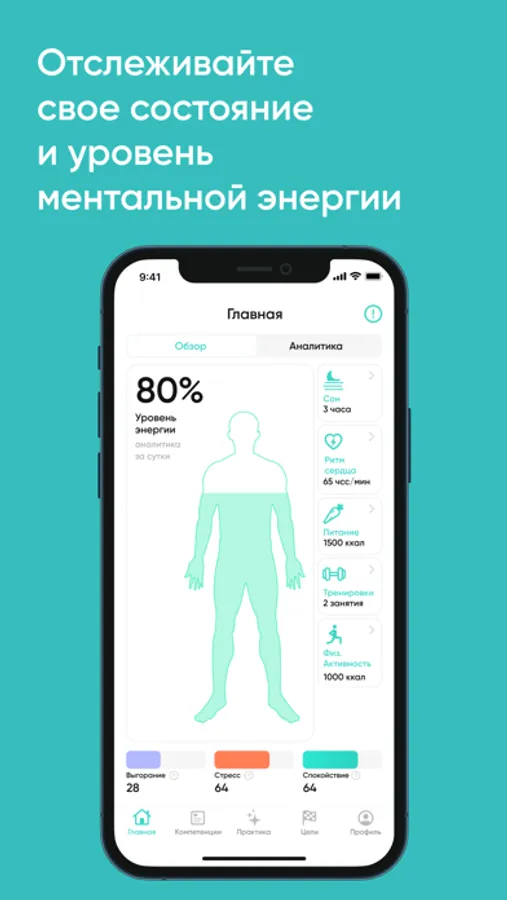 Наше приложение использует передовые алгоритмы для прогнозирования стресса и эмоционального выгорания, что позволяет вам уловить эти состояния заранее и принимать меры для предотвращения их возникновения с помощью рекомендуемых для Вас практик и упражнений.