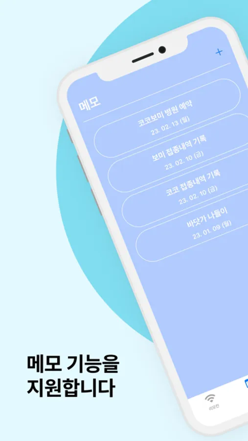 * 메모장 기능을 통해 반려동물 병원 기록 및 일기장 기능을 제공하며 아이들의 건강 관리 및 소중한 기억을 보관합니다