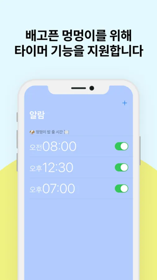 * 타이머 기능으로 배식 시간을 설정하고 알림을 보내 견주님께 정확한 시간을 알려드립니다
