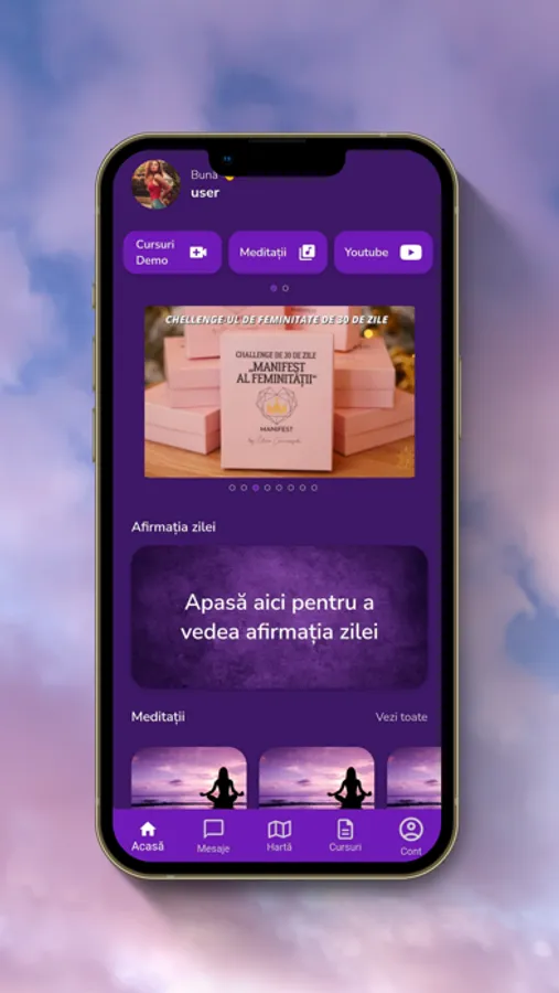 Calendar Menstrual / Astrologic, Afirmatia / Provocarea Zilei, Meditatii unice si Harta Sociala vin impreuna cu abonamentul lunar in valoare de 50 lei, insa si fara acesta va puteti bucura de aplicatie in mod limitat.