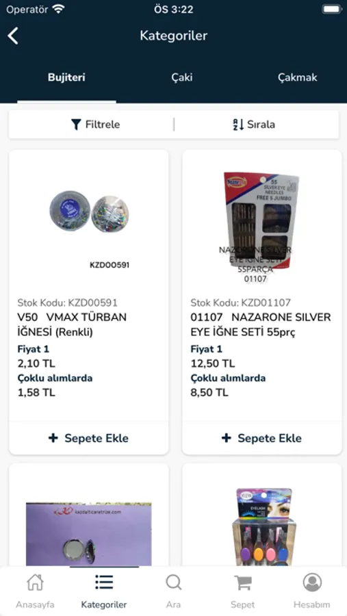 * Ürün kategorilerinde filtreleme yapabilirsiniz