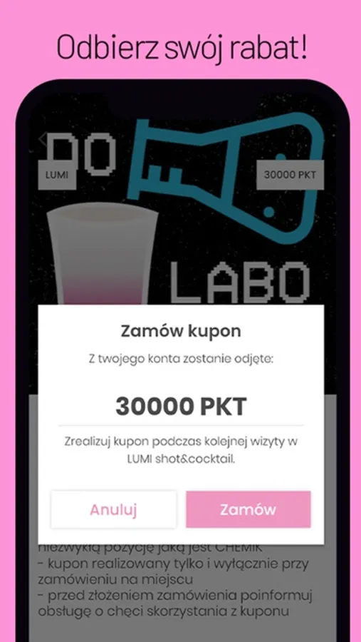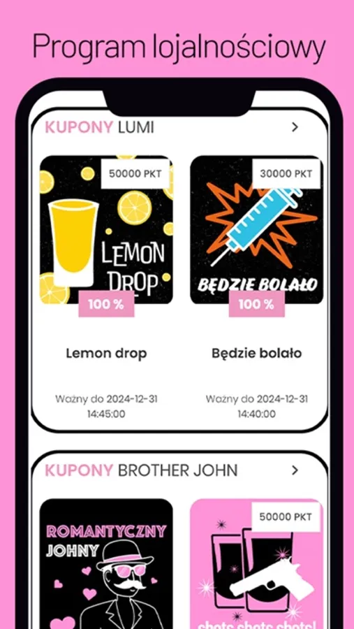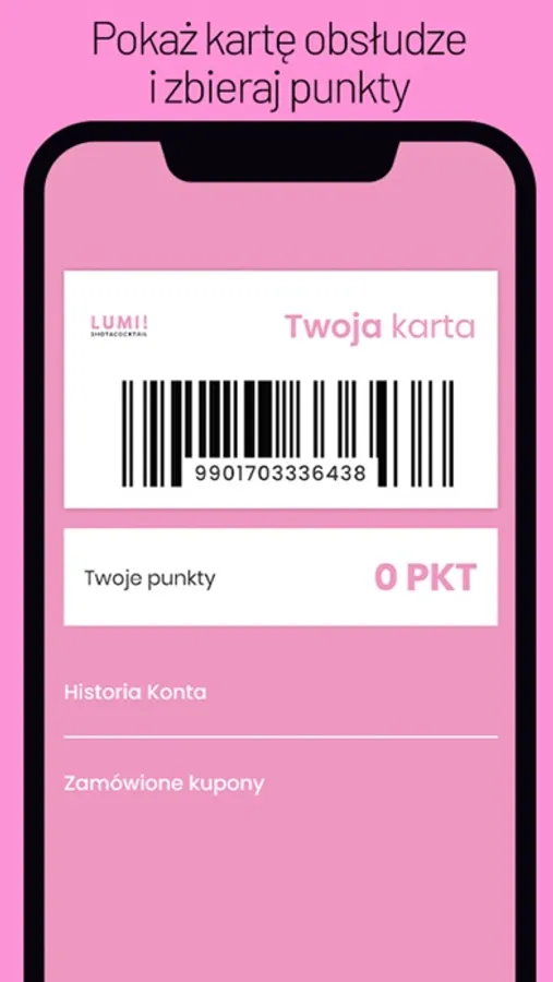 Dzięki aplikacji LUMI shot&cocktail dołącza do szalonej rodziny LUMI, która uwielbia dobrą zabawę przy wykręconych shot'ach i autorskich cocktailach. Zyskujesz dostęp do aktualności, promocji, eventów oraz wyjątkowych nagród i zniżek przygotowanych dla specjalnie Ciebie! W każdej lokalizacji zbierasz punkty, które możesz wykorzystać w barze lub wymieniać na nagrody.