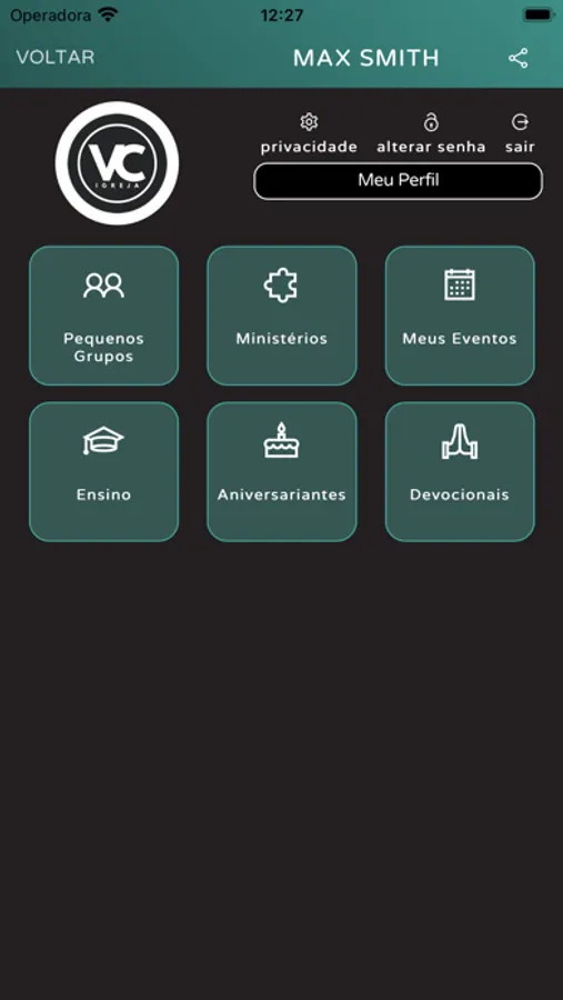 * No item Meu Perfil é possível atualizar seus dados cadastrais na Igreja;