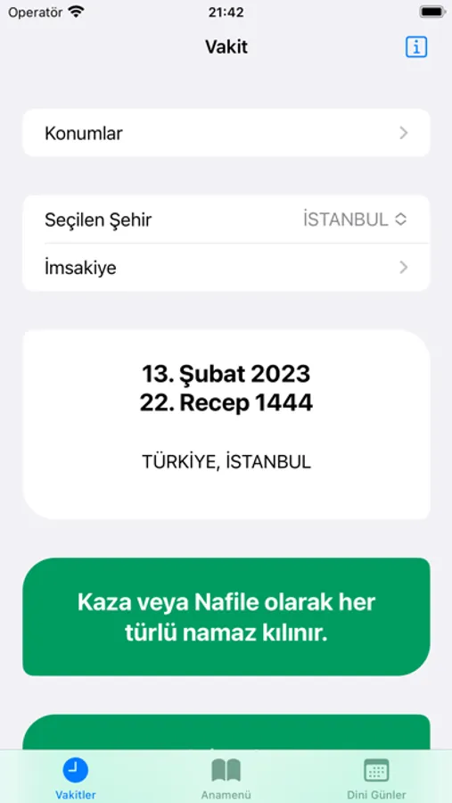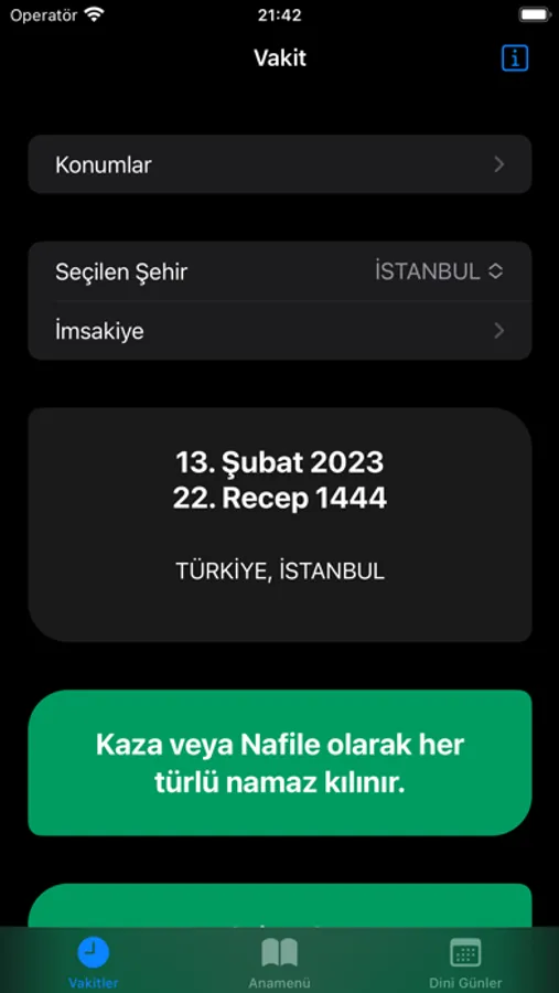 - İmsakiye ile Aylik ve Günlük Namaz Vakitlerini görüntüleyebilirsiniz