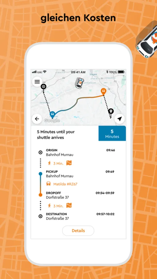 – Bringt dich im On-Demand Betriebsgebiet ans Ziel: Unabhängig von üblichen Fahrplänen und Haltestellen.