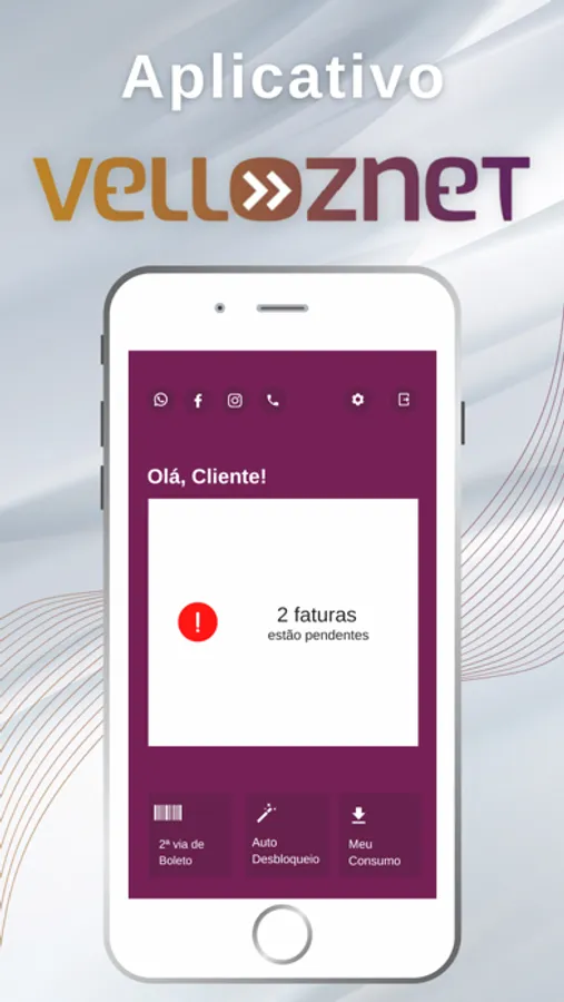 A Velloznet quer te manter sempre conectado e estar cada vez mais próxima de você! Com esse aplicativo você terá acesso a todas as facilidades de uma empresa conectada que prioriza a qualidade dos serviços e o bem estar de seus clientes.