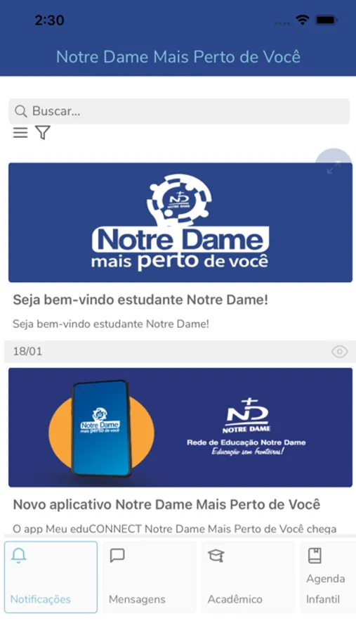 O app Meu eduCONNECT Notre Dame Mais Perto de Você chega para melhorar a comunicação entre instituição, pais/responsáveis e estudantes. Ele permite que as informações mais importantes cheguem rapidamente para os pais, em especial, e ao estudante que acessa, diminuindo os desencontros e desinformações do cotidiano escolar.