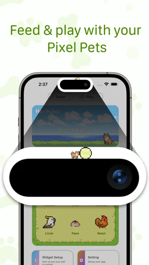 Island fetch: Let’s your pet fetch items dropping from Dynamic island and choose your favorite pixel pets from our Premium collections