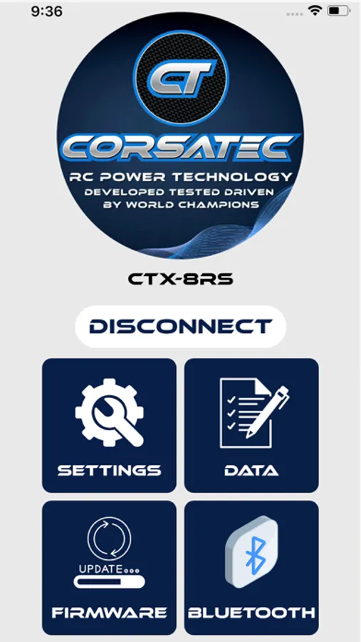 CORSATEC APP uses a BT connection, enabling fast updating, saving and modifying ESC parameters, option of “live data” logging, as well firmware updates to enhance your driving knowledge and experiences to a next level