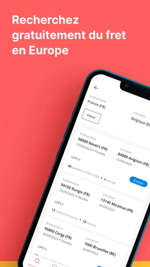 • Search for freight anywhere in France, Belgium and Germany, to reduce your empty trips and optimise the loading of your vehicles.