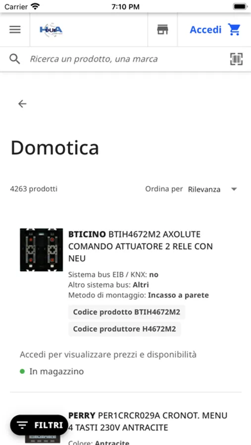 All'interno è possibile trovare un catalogo completo di prodotti ciascuno accompagnato da immagine e schede tecniche scaricabili.