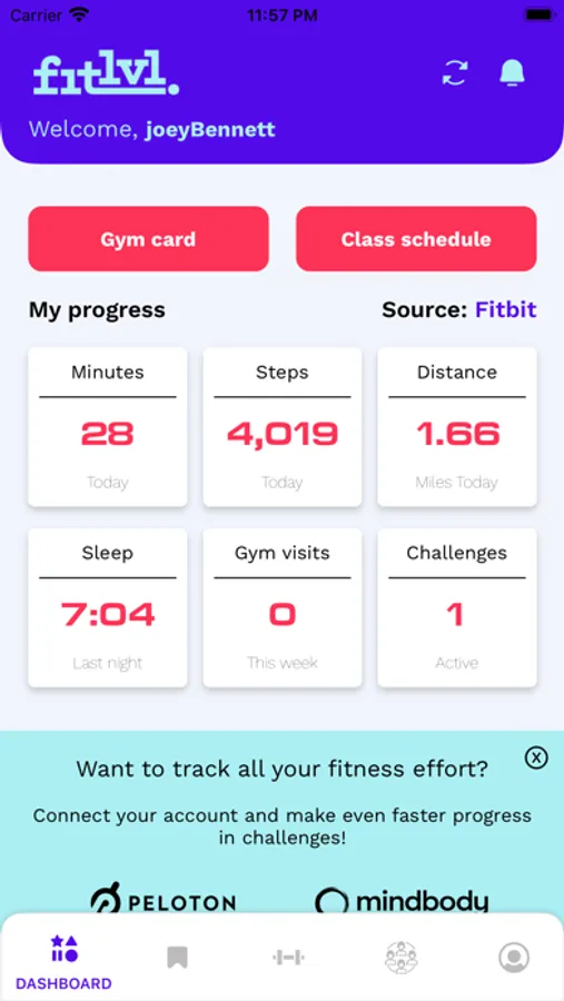 FitLvl is a fitness challenge platform by which friends and peers in a gym can participate in challenges for fun, staying fit, and win rewards for motivating others. FitLvl supports personal fitness data from Apple Health, Fitbit and has integrations with Mindbody and Peloton subscriptions.