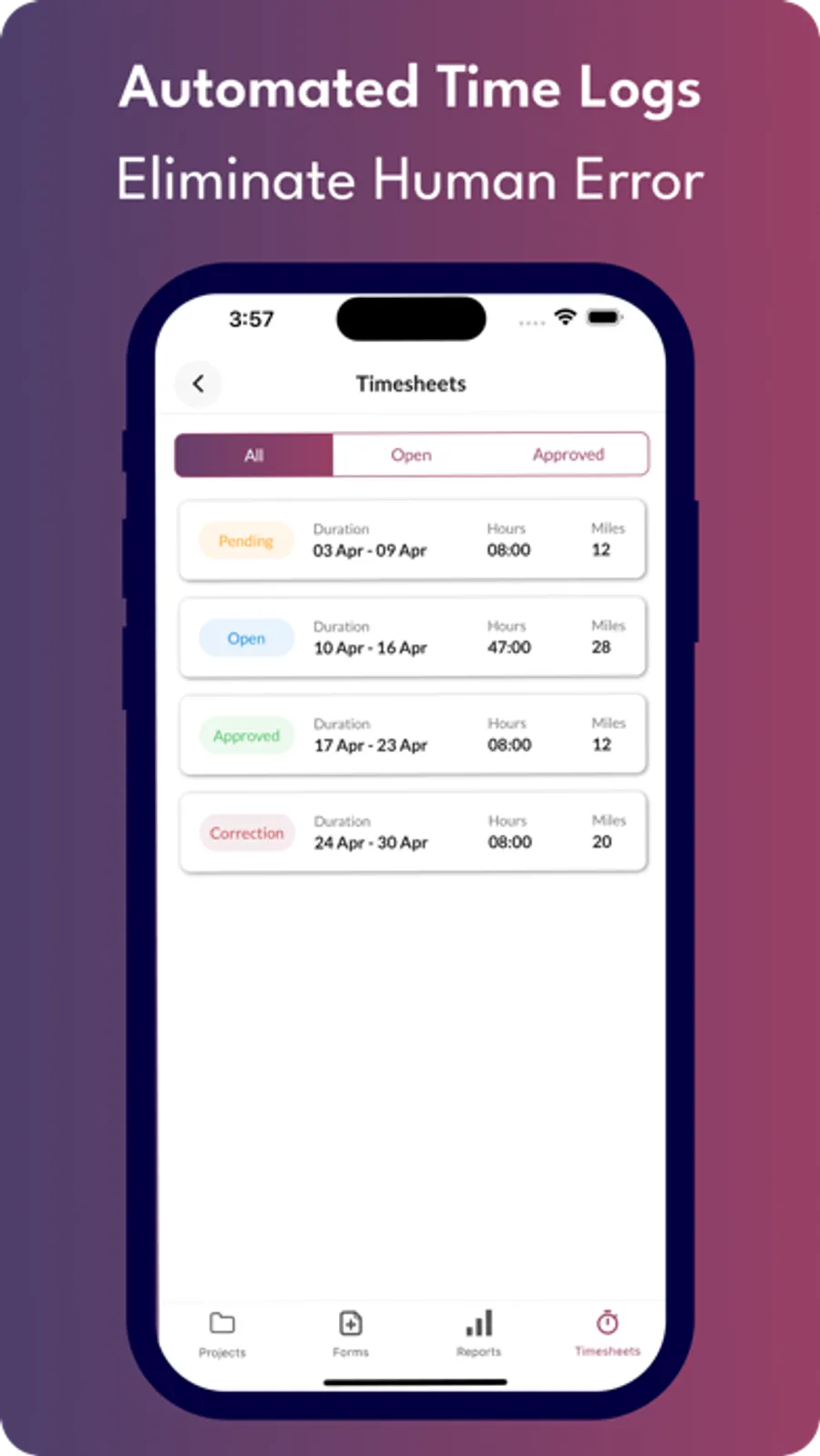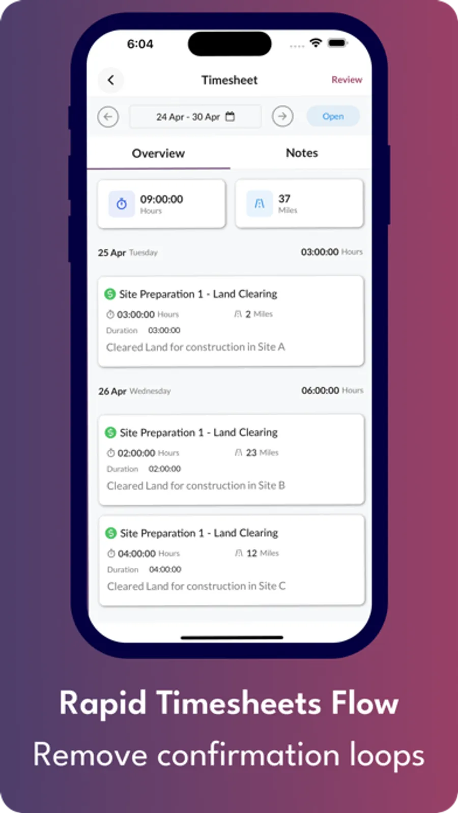 Field crews are given an intuitive mobile app to easily log time spent & details of work done
