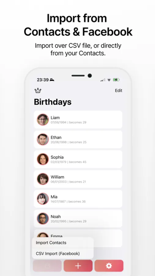 B-Day is the ultimate birthday reminder app that helps you never miss an important occasion again! With B-Day, you can easily import all your friends' and family's birthdays from your contacts or Facebook and receive timely notifications to ensure you always remember to celebrate their special day.