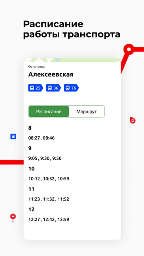 узнать расписание и прогноз прибытия транспорта на нужную остановку;