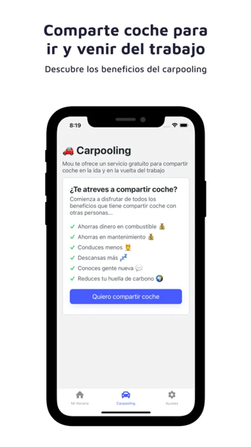 Comparte coche para ir y venir del trabajo (Actualmente solo disponible en Tenerife y para usuarios que cumplan los requisitos)