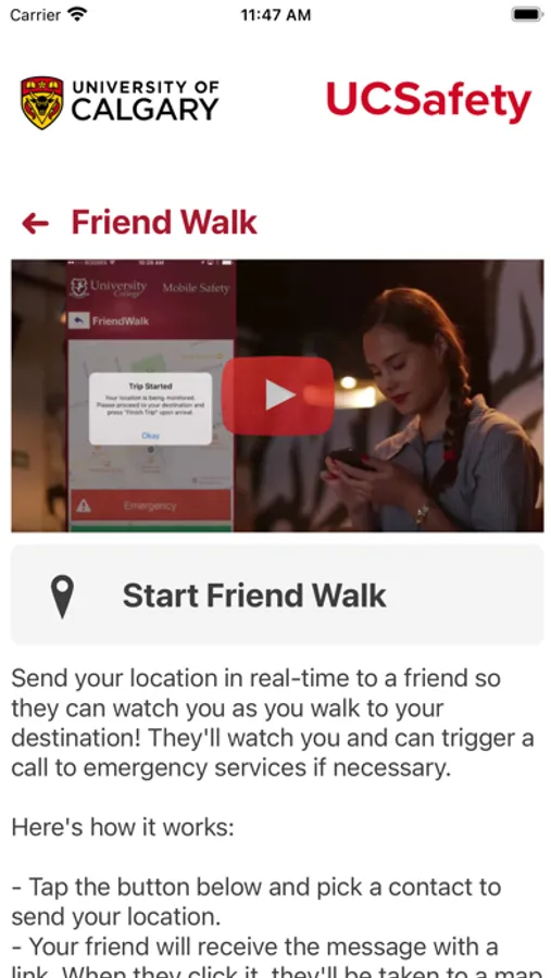 - Safety Notifications: Receive instant notifications and instructions from the University of Calgary safety when on-campus emergencies occur.