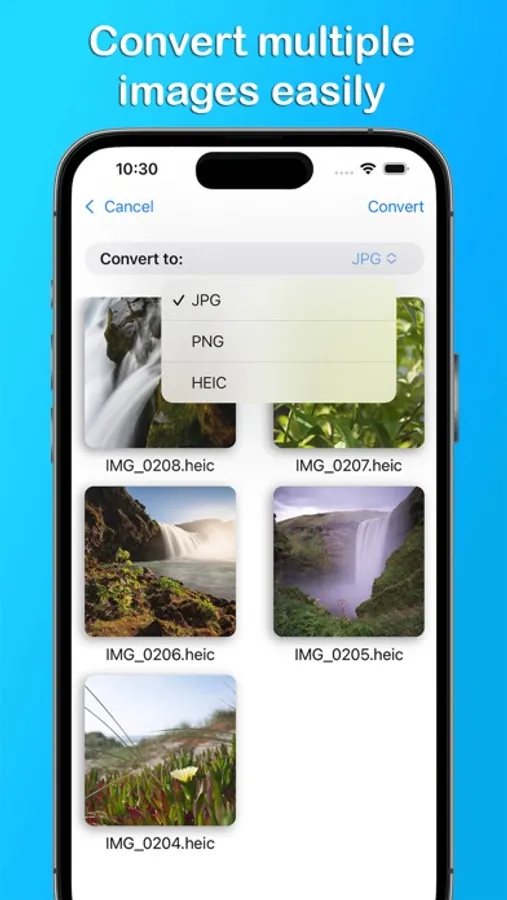 Easily Convert your photos to JPG / JPEG , PNG, or HEIC / HEIF format in an instant!