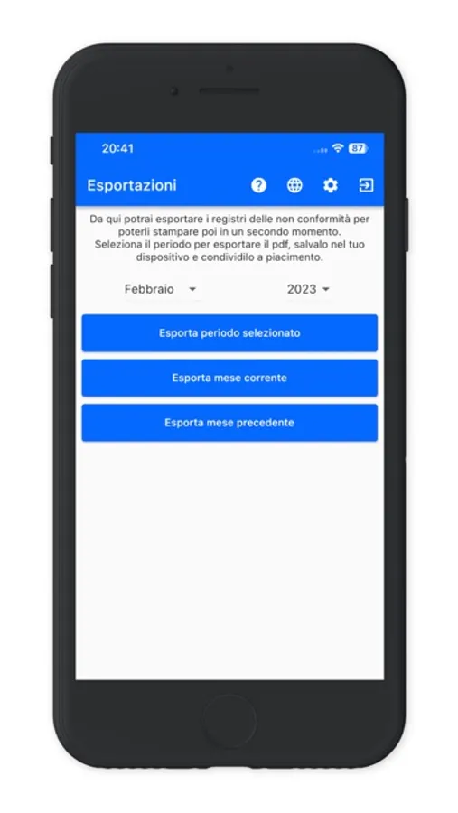 Demetra ti permette di tenere traccia sul tuo telefono di qualsiasi non conformità nel momento stesso in cui le rilevi senza più preoccuparti di annotare a mano il registro. In caso di controlli avrai sempre tutto in ordine e a portata di mano e potrai stampare con un click una copia cartacea delle schede HACCP nel caso ti venisse richiesto.
