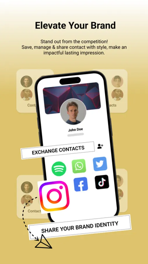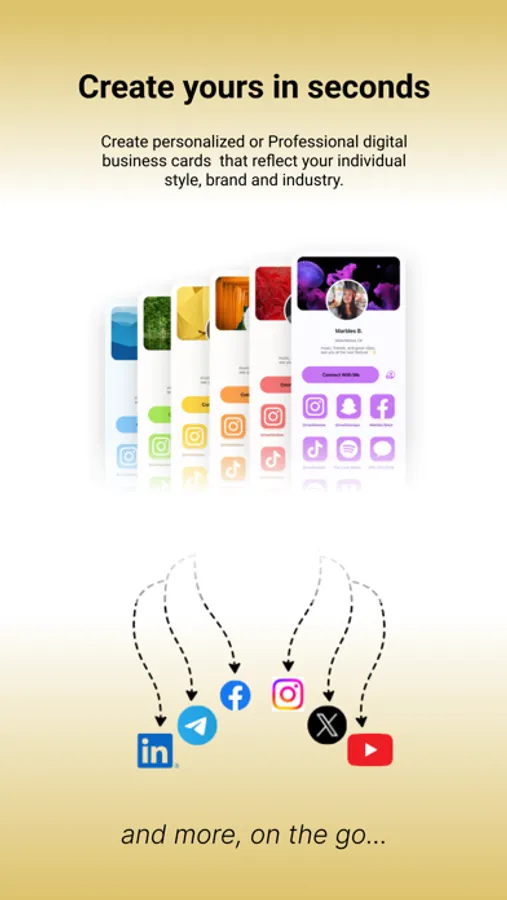 Our digital business card app makes networking effortless! Simply input your personal information, including your name, contact details, and social media handles. Our app will generate a unique QR code and NFC chip for you. When you meet someone new, share your digital business card by having them scan the QR code or tap their phone against yours.