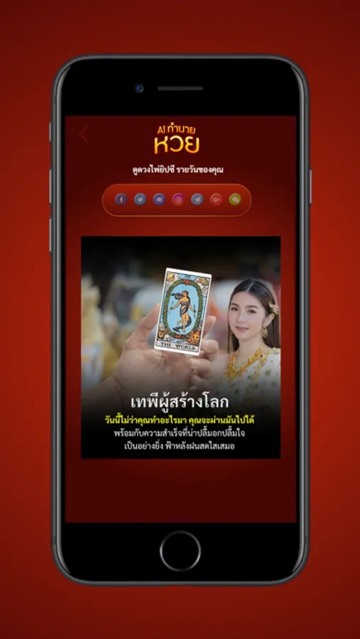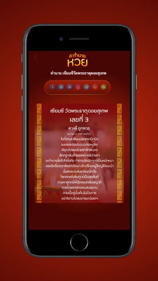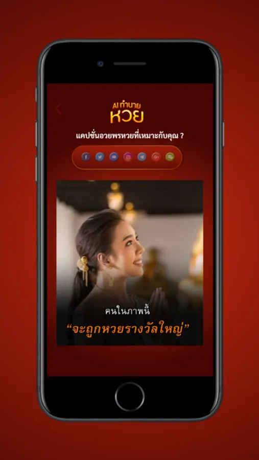 เพิ่มรูปภาพและชื่อของท่านเพื่อให้ปัญญาประดิษฐ์ทำนาย พร้อมแชร์ไปยังโซเชียลเน็ตเวิร์ค นอกจากนี้ยังมีห้องแชทรูมให้คอหวยได้เข้ามาพูดคุณแลกเปลี่ยนเรื่องราว และอีกมากมายรอคุณอยู่