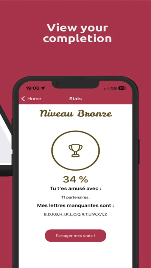 A statistical function also shows you if you have succeeded in completing the alphabet of firstname.