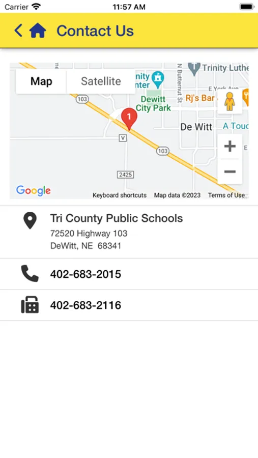 Contact Us provides maps of locations, a convenient way to dial important phone numbers, and provide other helpful information.
