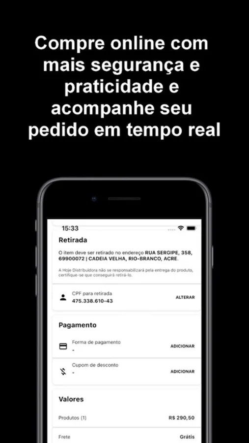 E com o aplicativo Hoje Distribuidora você pode consultar valores, realizar orçamentos, efetuar suas compras e receber no conforto do seu endereço, tudo pelo celular e sem estresse!