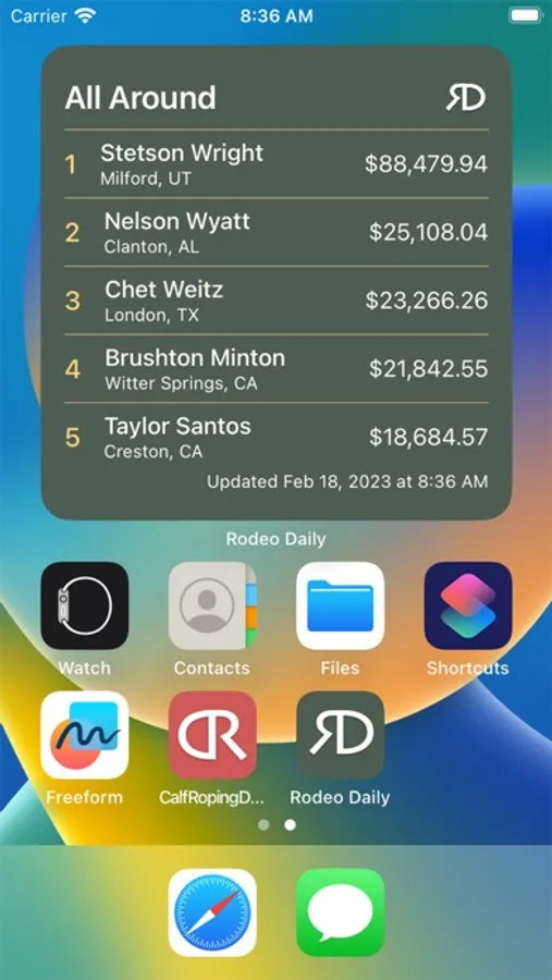 — Widgets: once your favorite event athlete is set you have access to widgets to place on your Home Screen showing the most recent standings for you favorite event or the most recents standings and results for you favorite athlete!