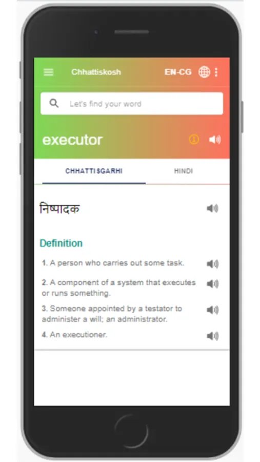 2. Using inbuilt speak functionality, you can listen to words or sentences. Click on speaker and app will read English words and Chhattisgarhi word.
