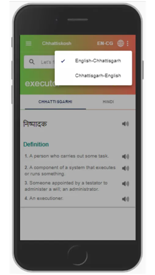 3. Use it as a Dictionary. You can type your words in English and get the exact word in Chhattisgarhi. You can type your words in Chhattisgarhi and get the exact word in English.