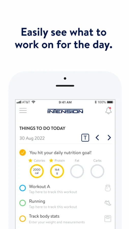 With the InTension Athletics app, you will have access to workout programs designed specifically to help you reach your fitness and health goals! You can follow & track your workouts, nutrition, lifestyle habits, measurements, and results–all with the help of your coach.