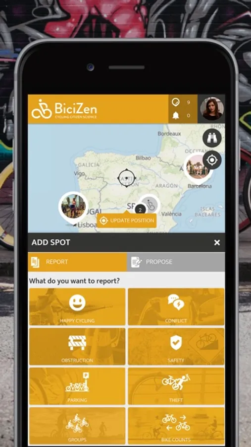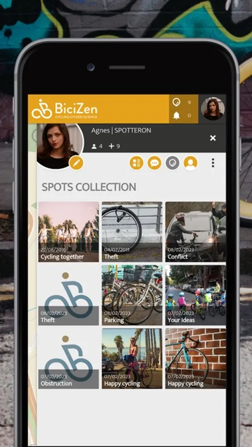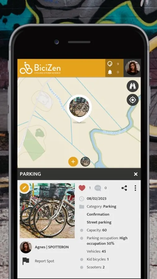 BiciZen allows you to share your cycling experiences and learn from other cyclists. You can share things such as where you feel safe or happy when cycling, where you found something obstructing your way that should be removed, where more cycling infrastructure would be needed, or even organize a bicibus to go to work or school with other cyclists.