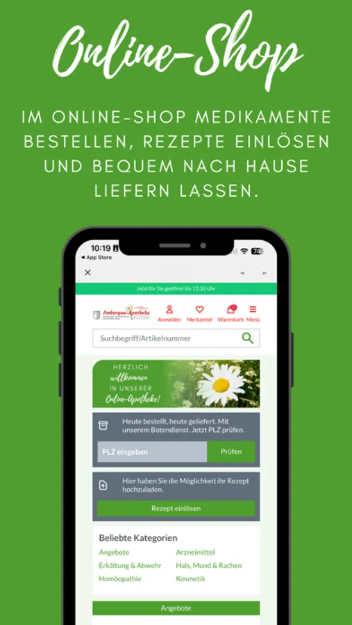 Apotheken-Gesundheits-App mit allen relevanten Serviceangeboten der Ambergau-Apotheke.