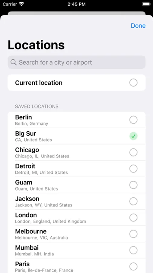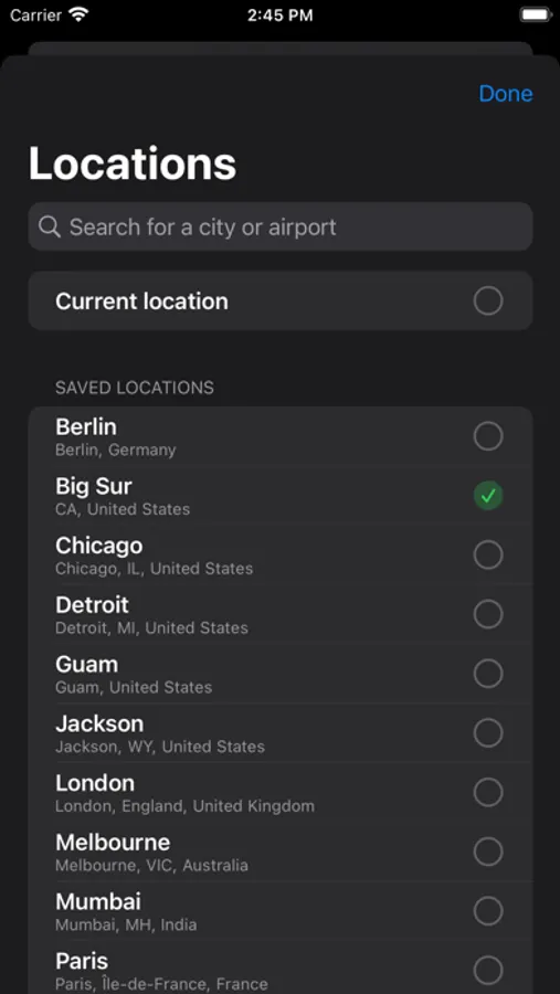 - Use your own location, or save custom locations from around the world