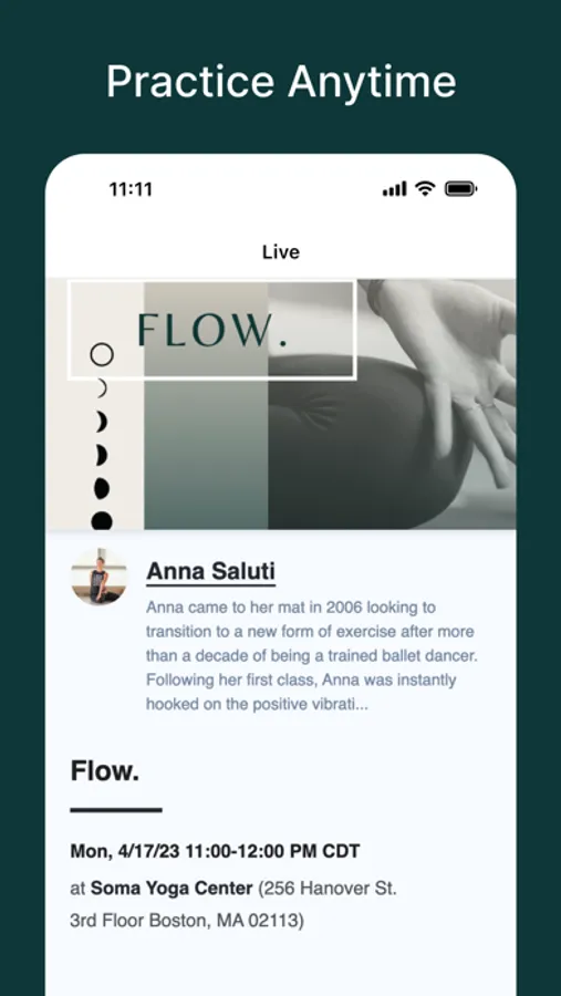 The Soma Yoga app lets you register for upcoming classes and watch replays from Soma Yoga.