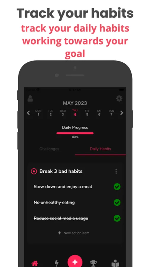 - Goal & Habit Tracker: Create new habits or break old ones by tracking your daily progress.