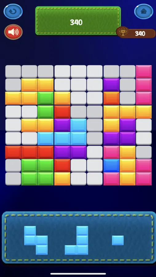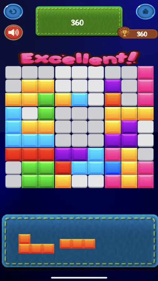 Your mission is to think carefully and fill the empty space using shapes, to complete lines or squares . and trying to reach the highest score, the colors of the blocks will change when the player reached a certain score. there are 5 different colors. the player loses when there is no compatibility between shapes and the grid (there is no place for the shapes).