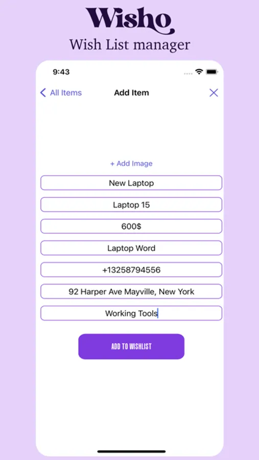 Welcome to Wish - Wish List Manager app! Make your wishes come true with Wisho app! Easily add items to your wish list from anywhere, anytime – and never forget what you wanted. Get organized and find the best deals with our price tracking feature. Create gift lists for family and friends, or keep track of items for yourself! Get access to Wish List Manager today and start making your dreams come true.
