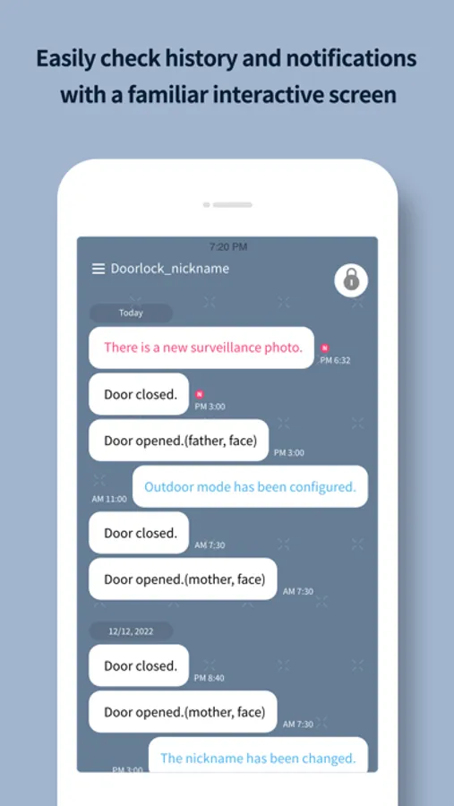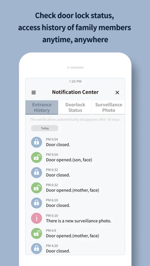 You can monitor the status of the door lock anytime, anywhere, check access history, issue temporary passwords, and use crime prevention mode.