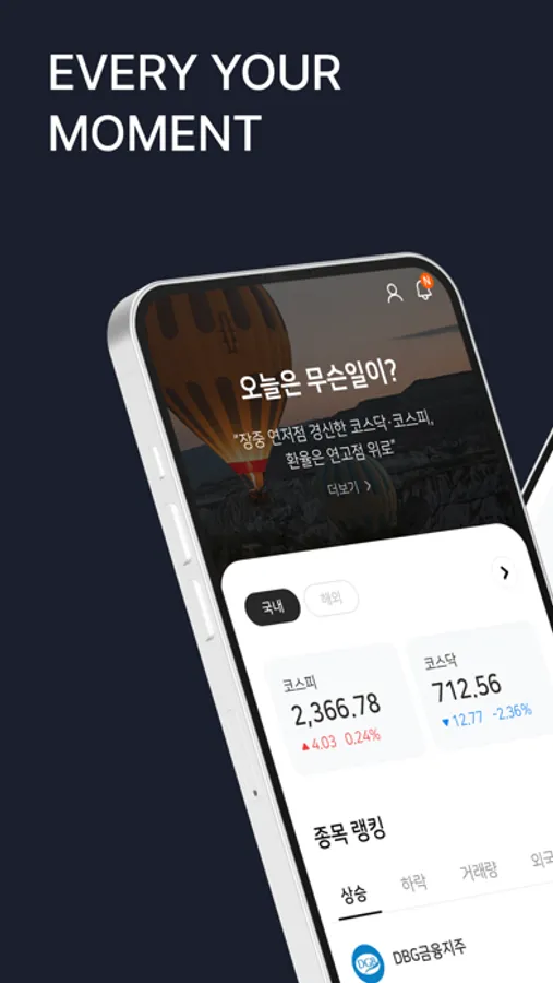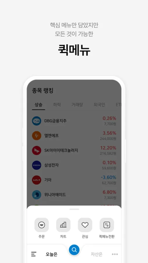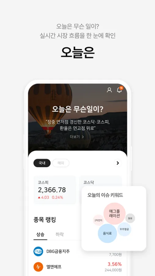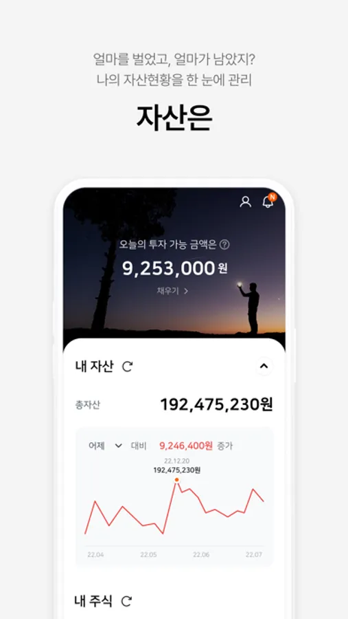 오늘의 시장흐름과 나의 자산 현황을 빠르게 확인하세요.