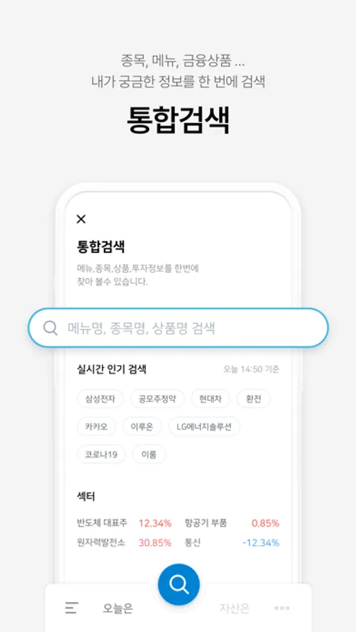 ■ “통합검색”으로 내가 원하는 종목, 메뉴, 금융상품까지