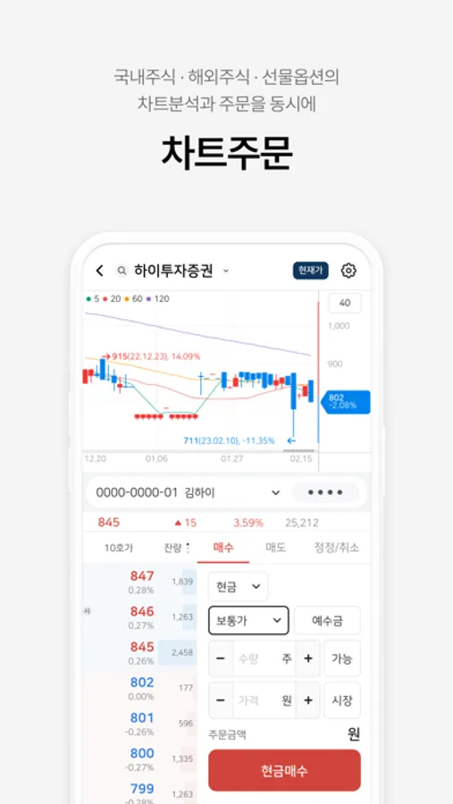 ■ 국내주식, 해외주식, 선물옵션의 “차트주문”으로