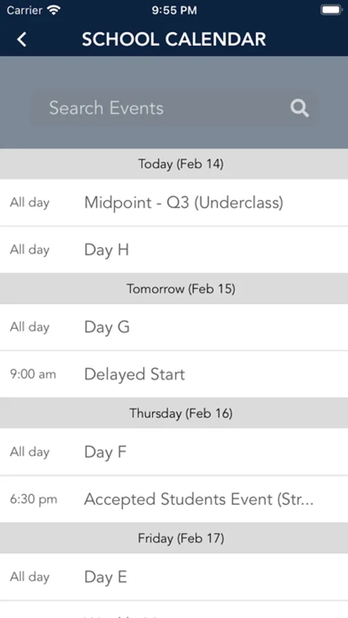 This beautiful, customizable design features a clear layout of everything you need as a parent, staff member, student, alum, or any other school community member: