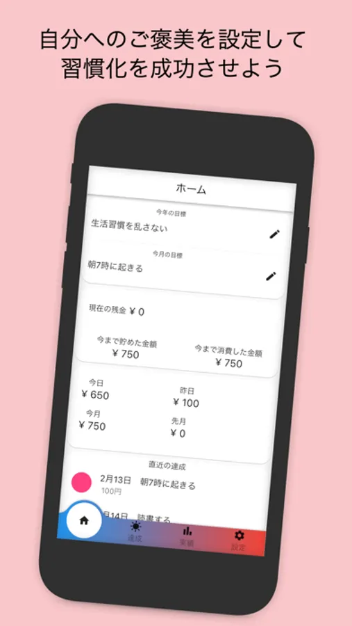 ・ Set ""habit"" and ""amount you get at the time of achievement"" like a game.