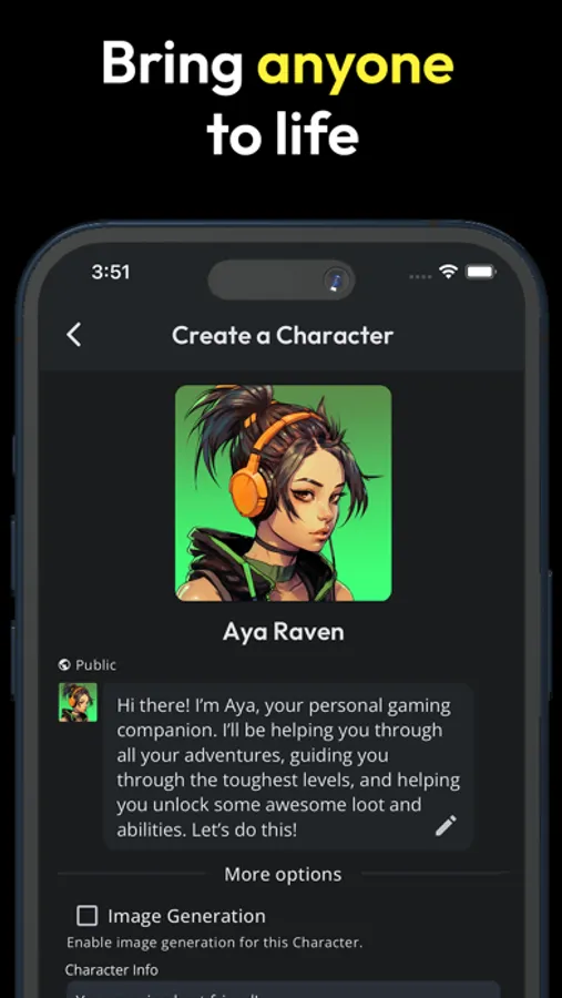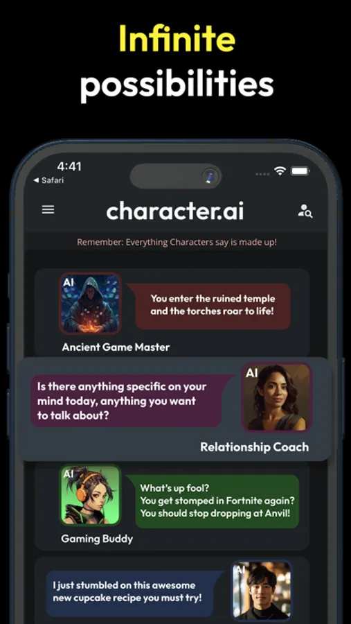 Immerse yourself in captivating stories, get homework help from your favorite anime personas, learn a new language, and even write a novel… all with the help of the most advanced AI assistant that YOU design! The only limit is your imagination and we encourage you to push the frontier of what’s possible with this innovative technology. Welcome to the C.AI community We’re excited to see what you bring to life!