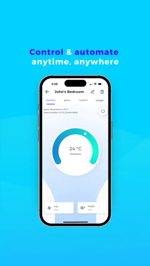 Welcome to airo+, your one stop solution for seamless and intelligent living powered by AI! airo+ is a device management app to conveniently control and manage your air-cons. It is designed to enhance every aspect of your air-con experience. From automating your air-con to monitoring your energy consumption, we've got you covered.